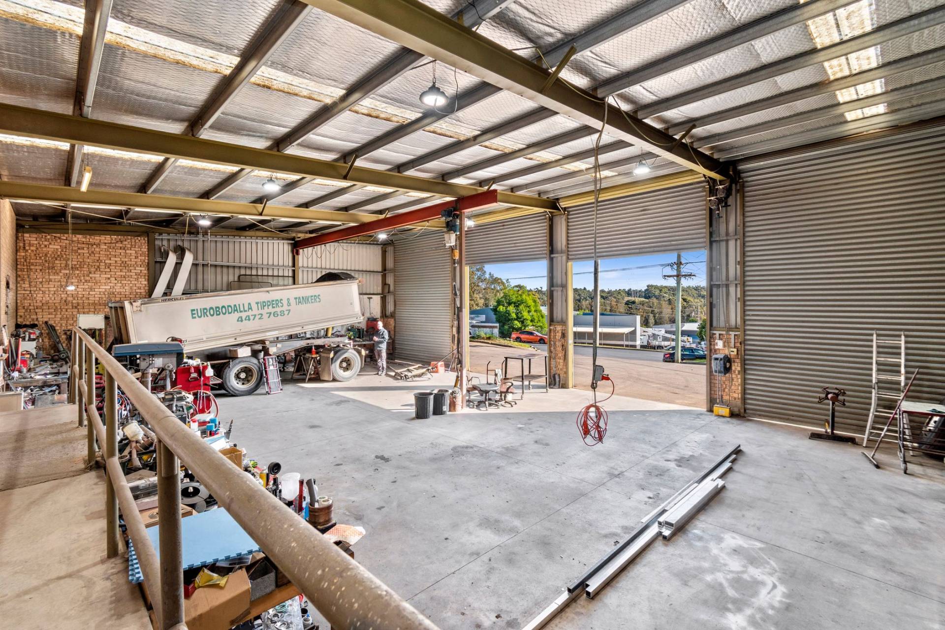 The land is 1984 sqm and has a large workshop with four automatic roller doors nearly 5 meters in height.