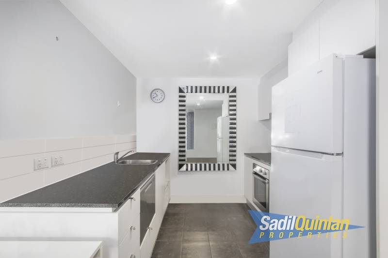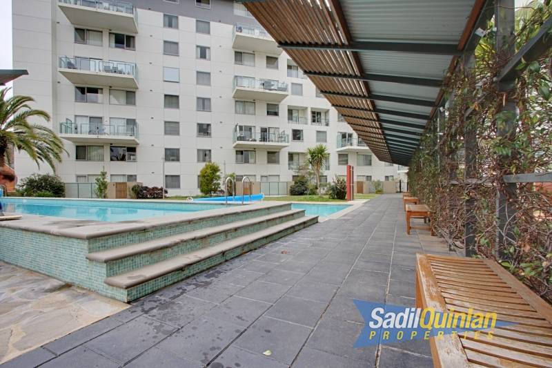 A quality 1 bedroom apartment, perched on the fifth floor. An open plan lounge-dining areas pours out onto a tiled balcony area. The master bedroom features built ins and a well equipped kitchen comes with electric appliances and dishwasher.