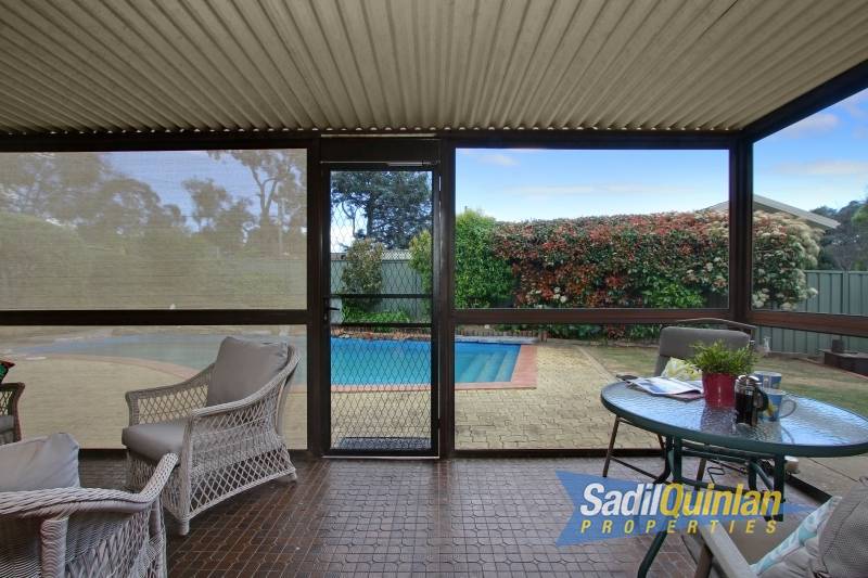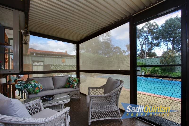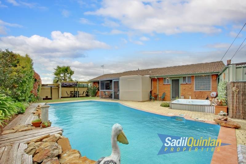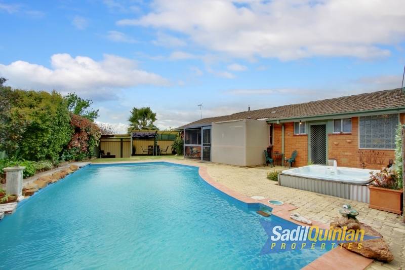 A salt water inground pool and built in spa highlights the backyard with a second covered entertaining/conversation area offering privacy and seclusion.